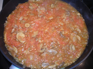 Por último añadimos el tomate, con un poco de sal, azúcar, pimienta y albahaca (las especias, siempre al gusto) y dejamos que se sofría todo bien.