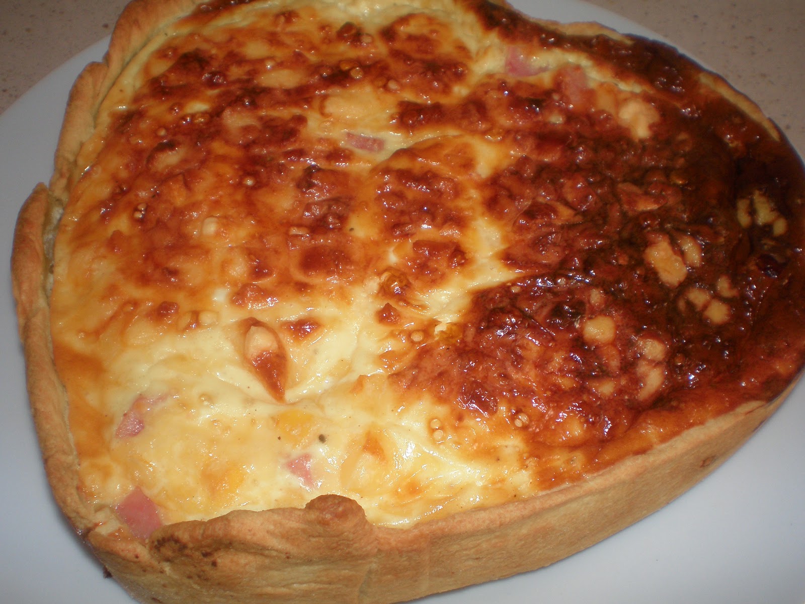 Ingredientes: 1 lámina de masa quebrada, 200grs jamón cocido, 150grs queso, 3 huevos, 500ml nata, sal, pimienta, nuez moscada.